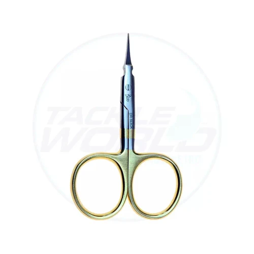 Perhaps the ‘standard’ small fly scissors at 3.5 inches, they have a fine short point for neat fine and accurate cutting. Serrated blades work well on both natural and synthetic materials. Notch at the base of the blades is designed for cutting wire and lead.